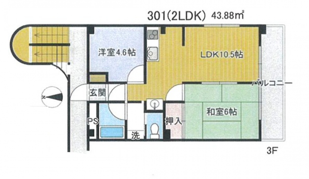 - ●間取り/2LDK(DK10.5帖・洋4.6帖・和6帖)